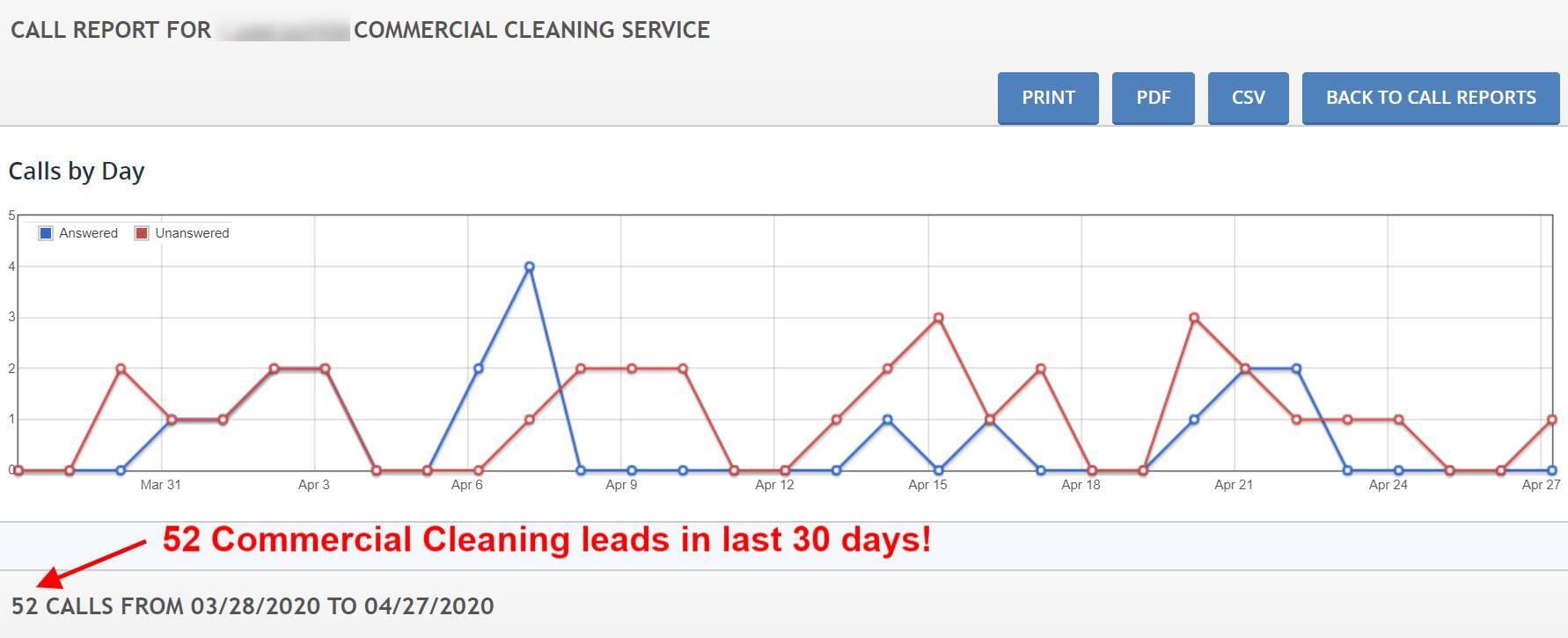 52 Commercial Cleaning Calls in 30 days